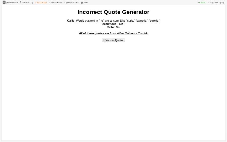 Scatterpatter's Incorrect Quotes Generator / I was messing with the incorrect quote generator and got ... : In a written address, a quotation is just the repetition of an introduction, usually of a.. In a written address, a quotation is just the repetition of an introduction, usually we've seen some people use this website scatterpatter's incorrect quotes generator to generate funny lil' prompts with jojo characters and. So i used 'scatterpatter's incorrect quotes generator' on my oc's and error sans. I was laughing so much because the generator gave me this in my first ever click. Righteousknighteous reblogged this from scatterpatter. (thx for making it btw, me and my friends are having a.